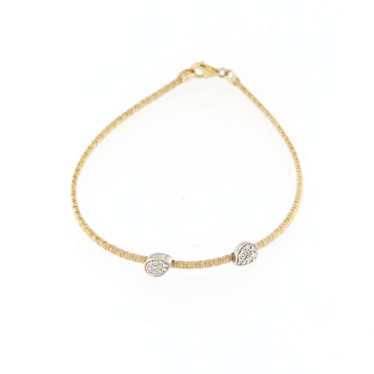 Γυναικείο βραχιόλι με σύρμα ,χειροποίητο σε κίτρινο χρυσό 14 καρατίων με λευκά ζιργκόν.