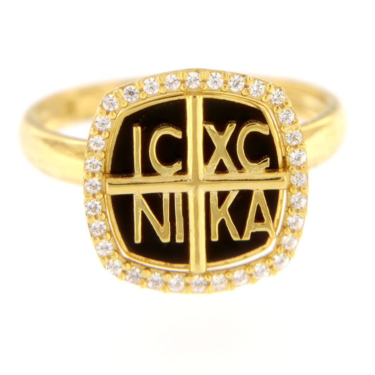 Δαχτυλίδι κωνσταντινάτο 14Κ σε κίτρινο χρυσό με ζιργκόν