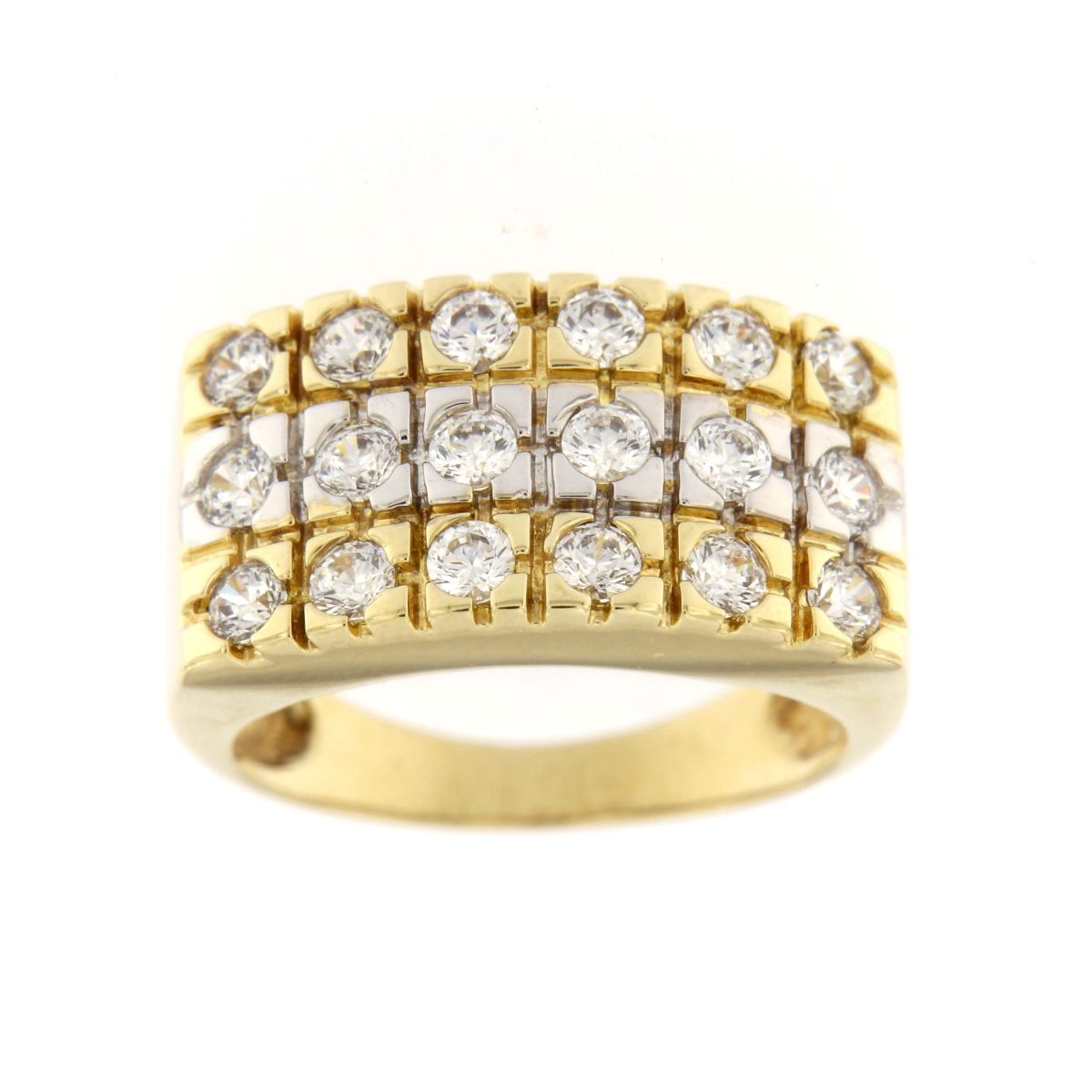 Γυναικείο δαχτυλίδι σε κίτρινο και λευκό χρυσό 14 καρατίων διακοσμημένο με λευκά ζιρκόν.