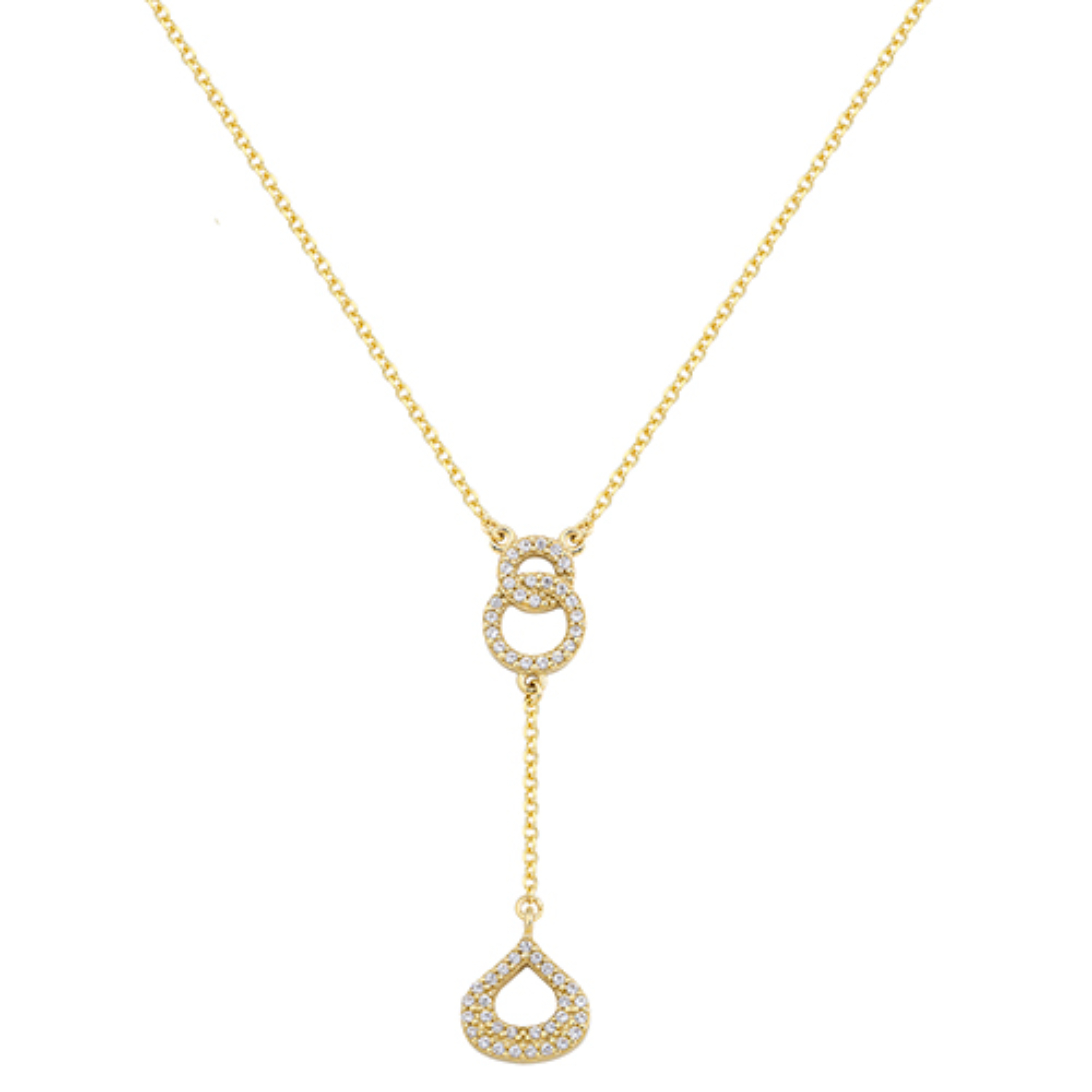 Γυναικείο κολιέ σε κίτρινο χρυσό 9 καρατίων σε στυλ γραβάτα με λευκά ζιργκόν.