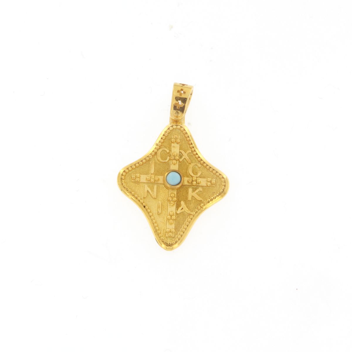 Κωνσταντινάτο σε κίτρινο χρυσό 14 καρατίων με τυρκουάζ .