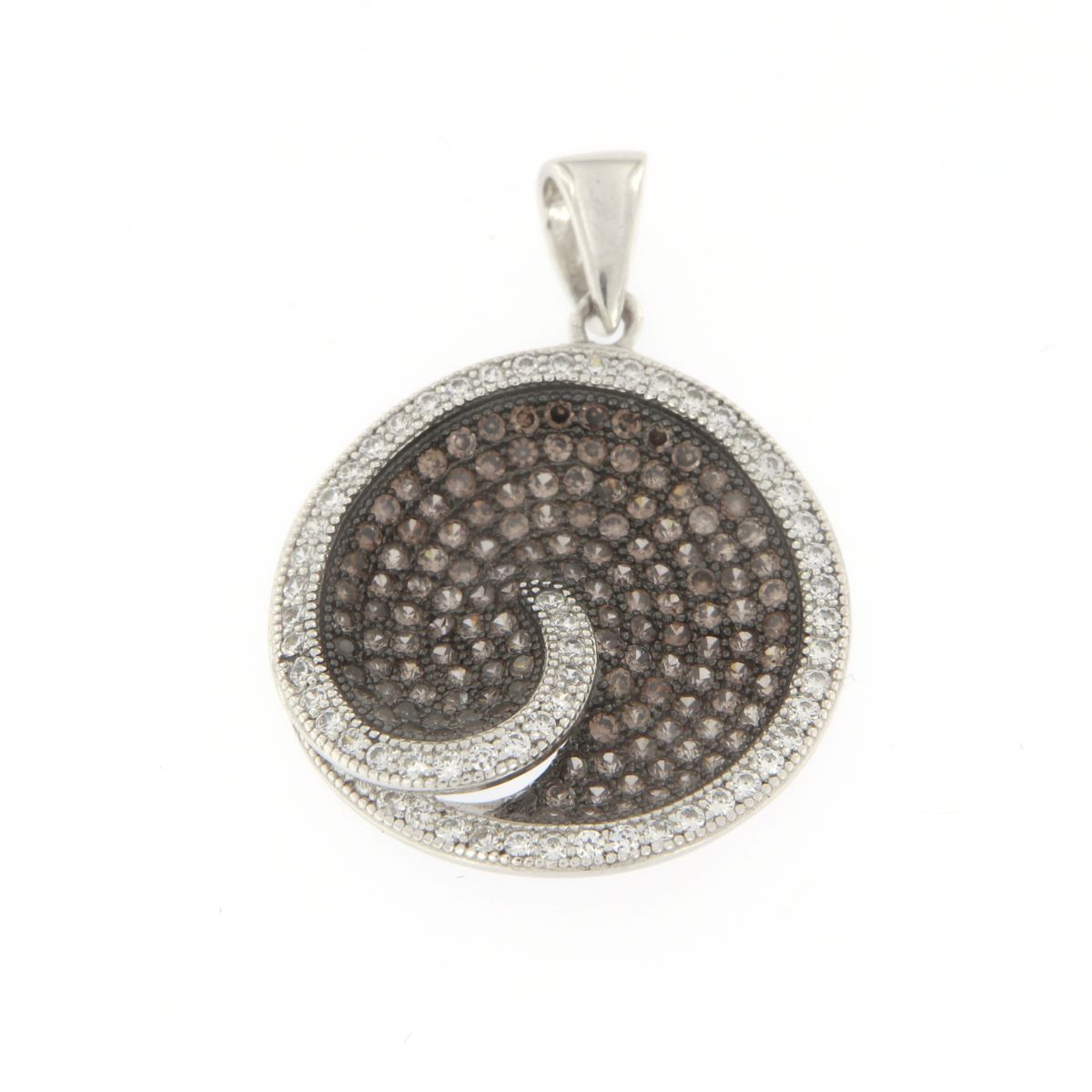 Γυναικείο μενταγιόν με σχήμα στρογγυλό με εσωτερικά καφέ ζιργκόν, ασημένιο 925.