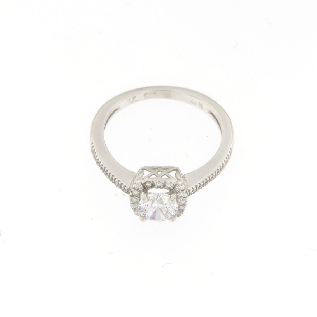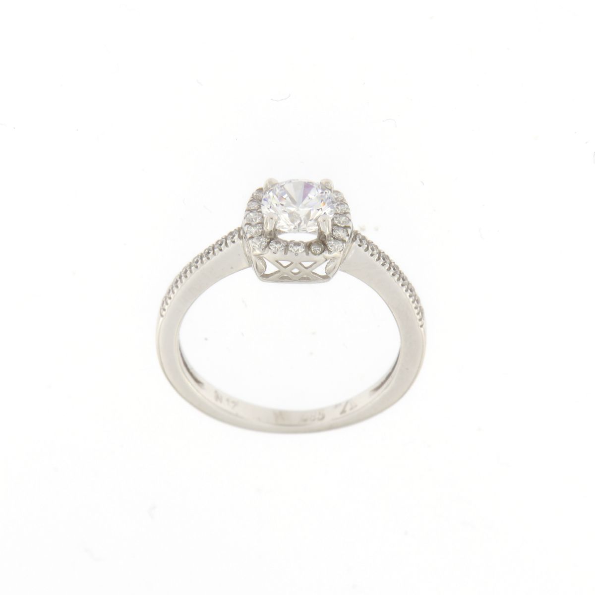 Μονόπετρο δαχτυλίδι σε λευκό χρυσό 14 καρατίων με λευκά ζιργκόν.
