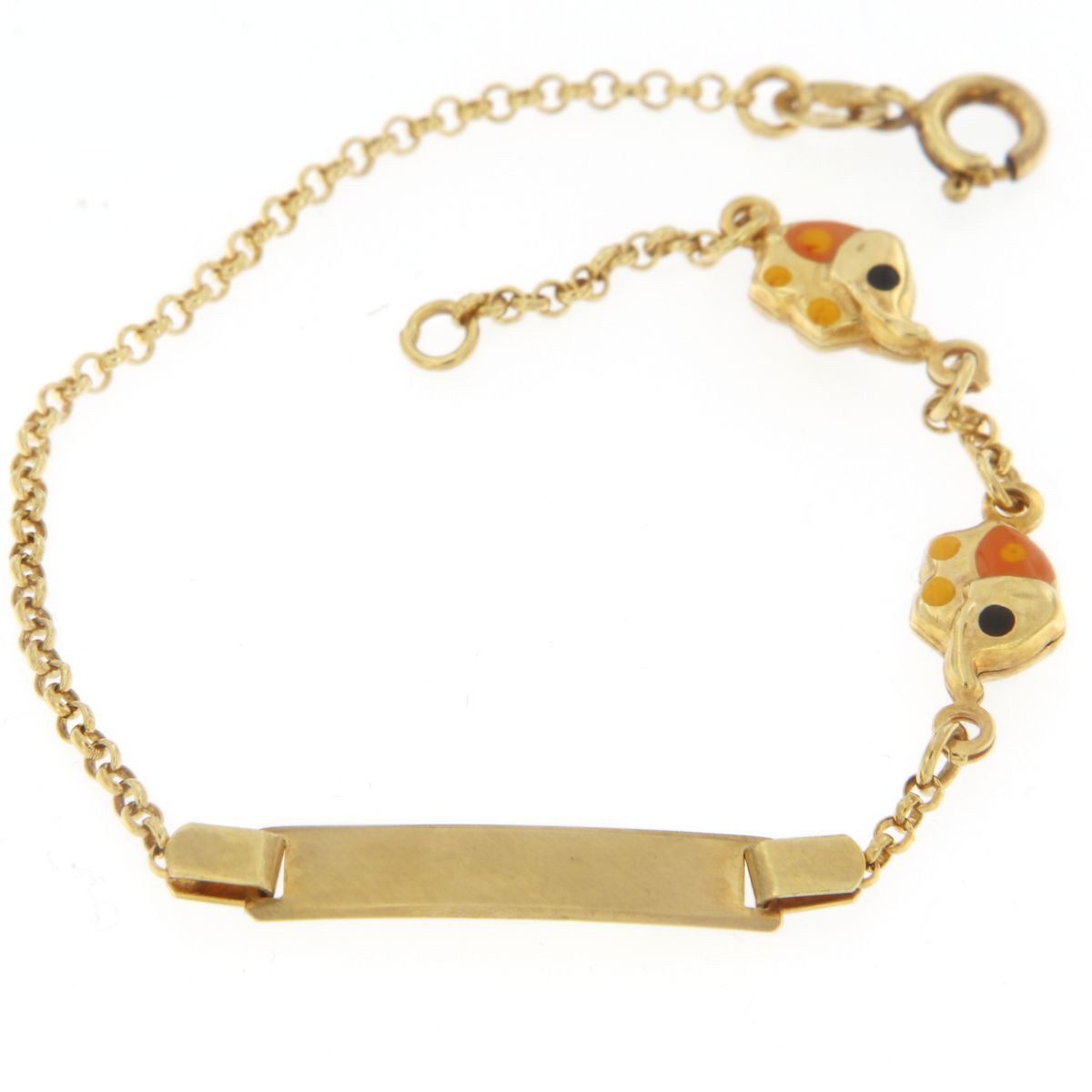 Παιδκή ταυτότητα για κορίτσι, σε κίτρινο χρυσό 14 καρατίων, διακοσμημένο με στοιχεία ελεφαντάκια.
