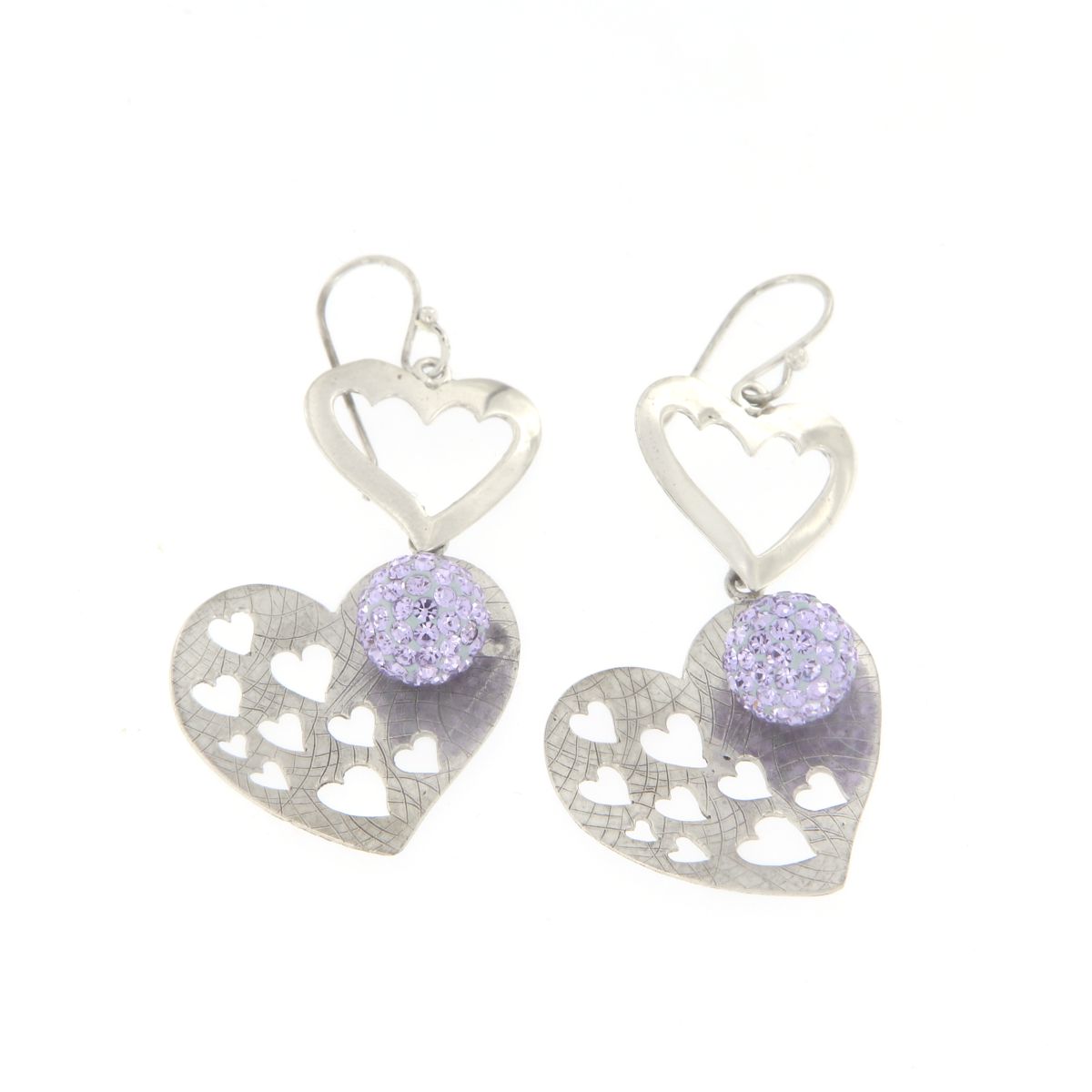 Γυναικεία μοντέρνα κρεμαστά σκουλαρίκια με σχήμα καρδιάς και μοβ ζιργκόν, ασημένια 925.