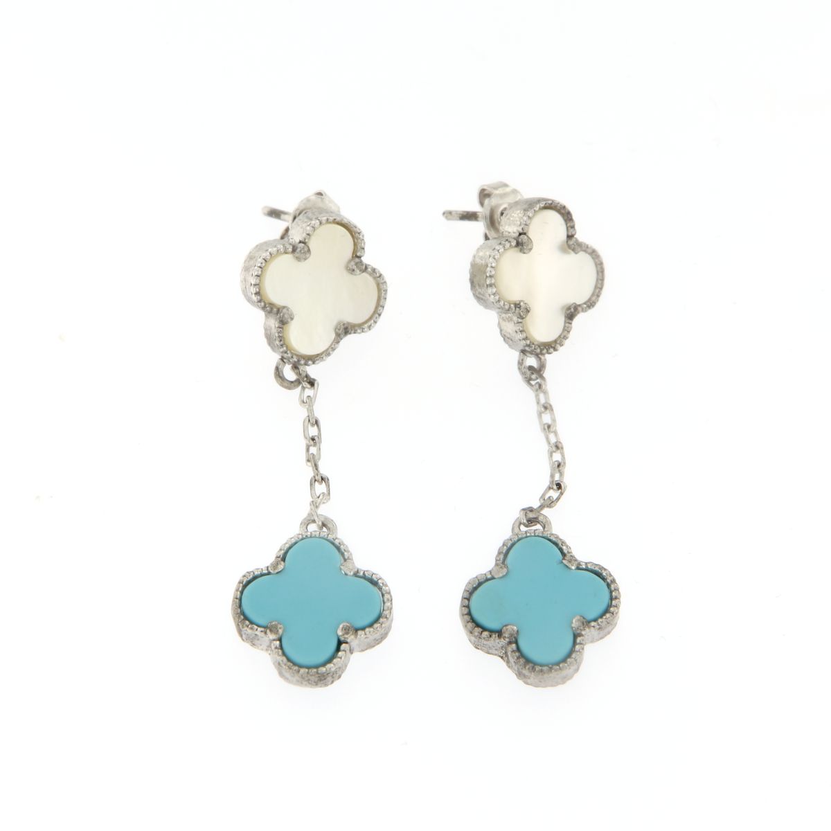 Γυναικεία μοντέρνα κρεμαστά σκουλαρίκια με σχήμα μαργαρίτας με φίλντισι και τυρκουάζ , ασημένια 925.