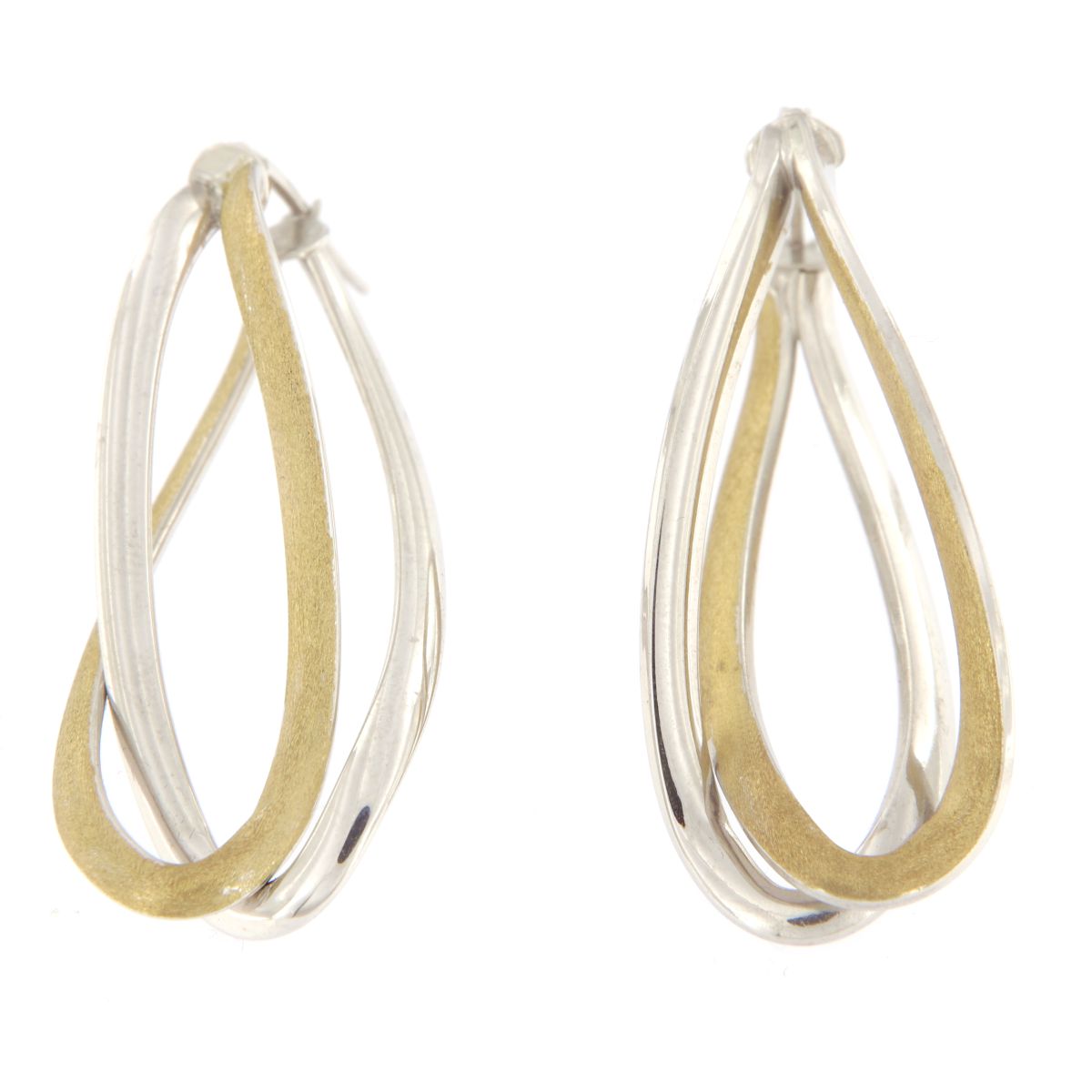 Γυναικεία σκουλαρίκια κρεμαστά, σε κίτρινο και λευκό χρυσό 14 καρατίων.