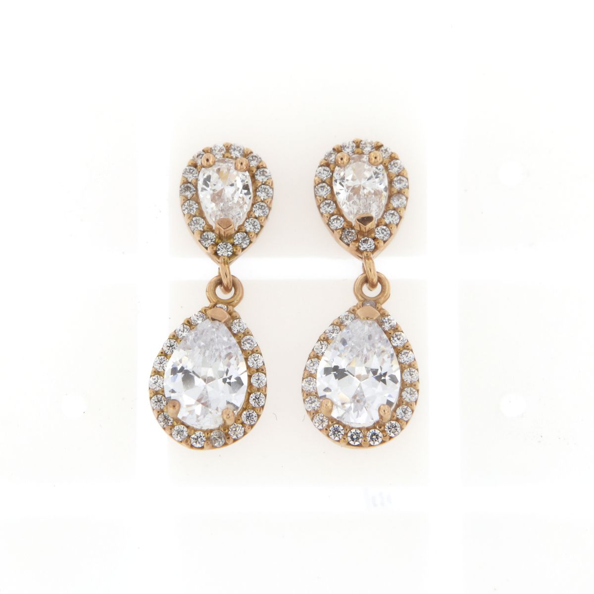 Γυναικεία μακριά σκουλαρίκια με σχήμα δάκρυ , σε ροζ χρυσό 14καρατίων διακοσμημένο με λευκά ζιργκόν