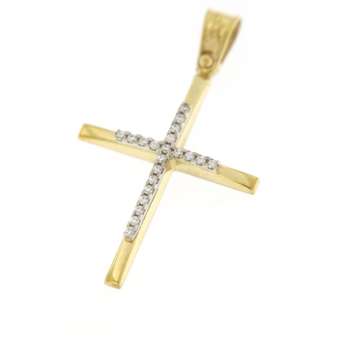 Γυναικείος σταυρός σε κίτρινο και λευκό χρυσό 14 καρατίων με λευκά ζιργκόν.