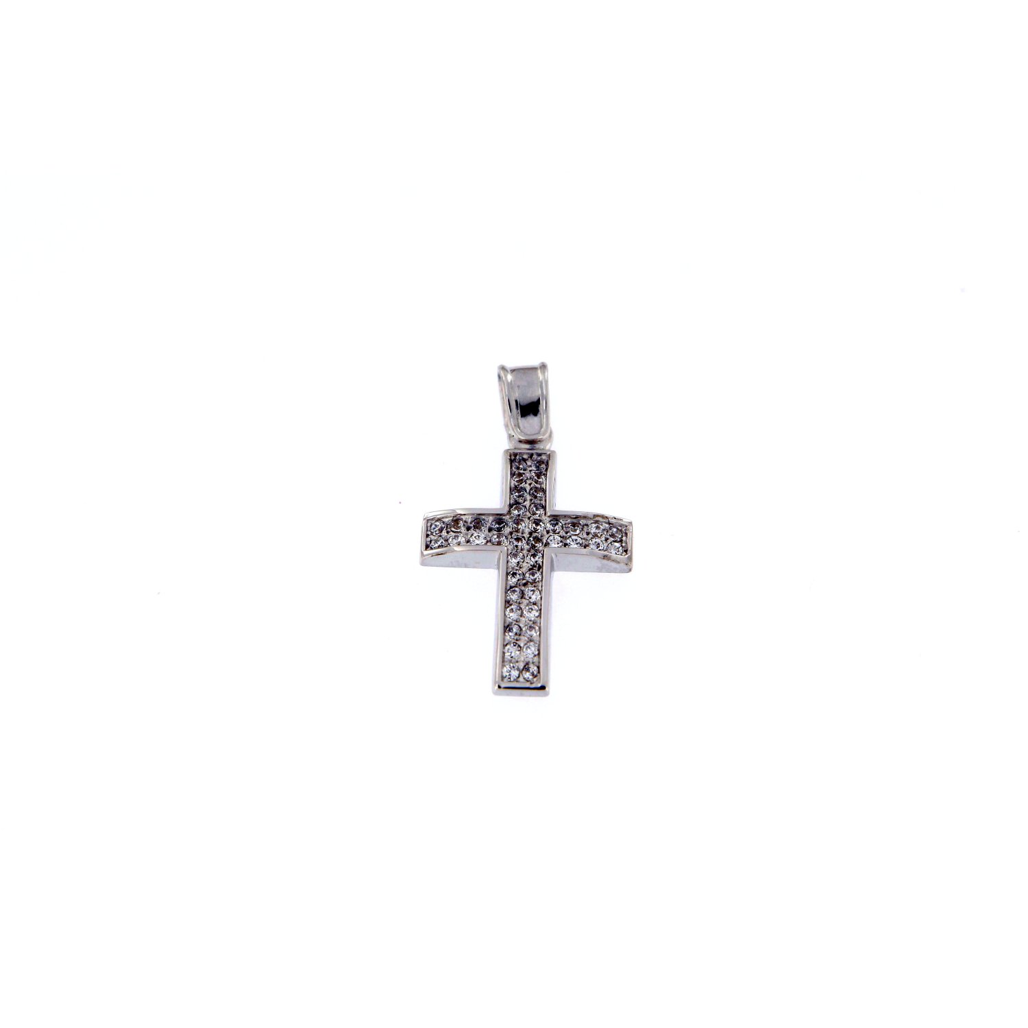 Γυναικείος σταυρός σε λευκό χρυσό 14 καρατίων με λευκά ζιργκόν.