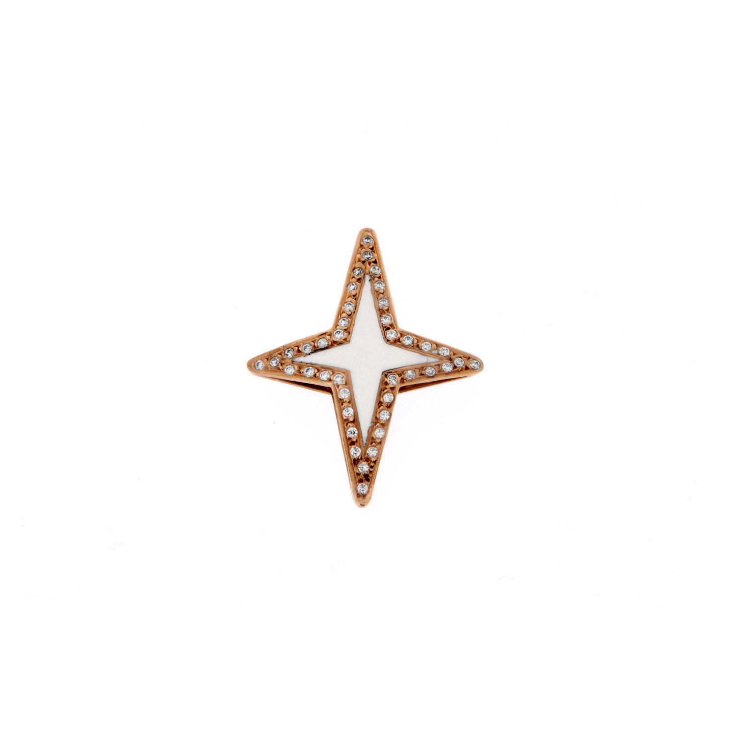 Γυναικείος σταυρός με λουστρέ επιφάνεια , σχέδιο με λευκό σμάλτο σε ροζ χρυσό 14 καρατίων με λευκά ζιργκόν