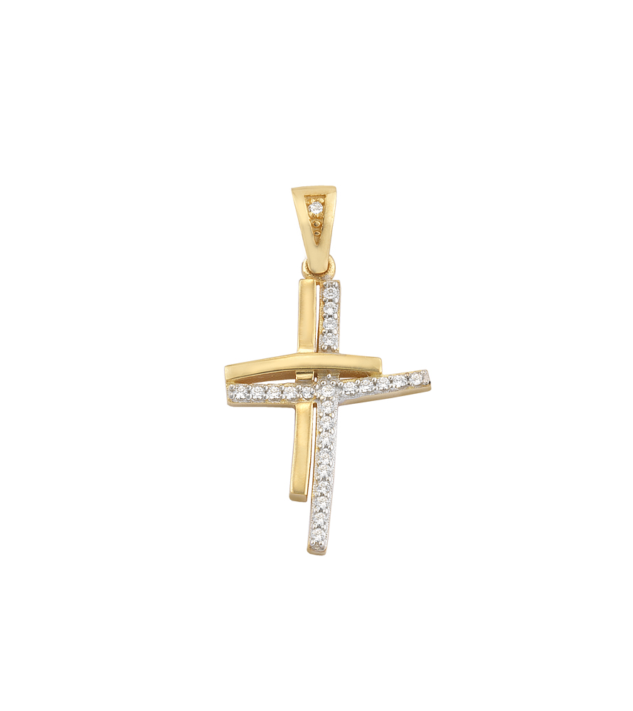Γυναικείος σταυρός σε κίτρινο χρυσό 9 καρατίων με λευκά ζιργκόν.