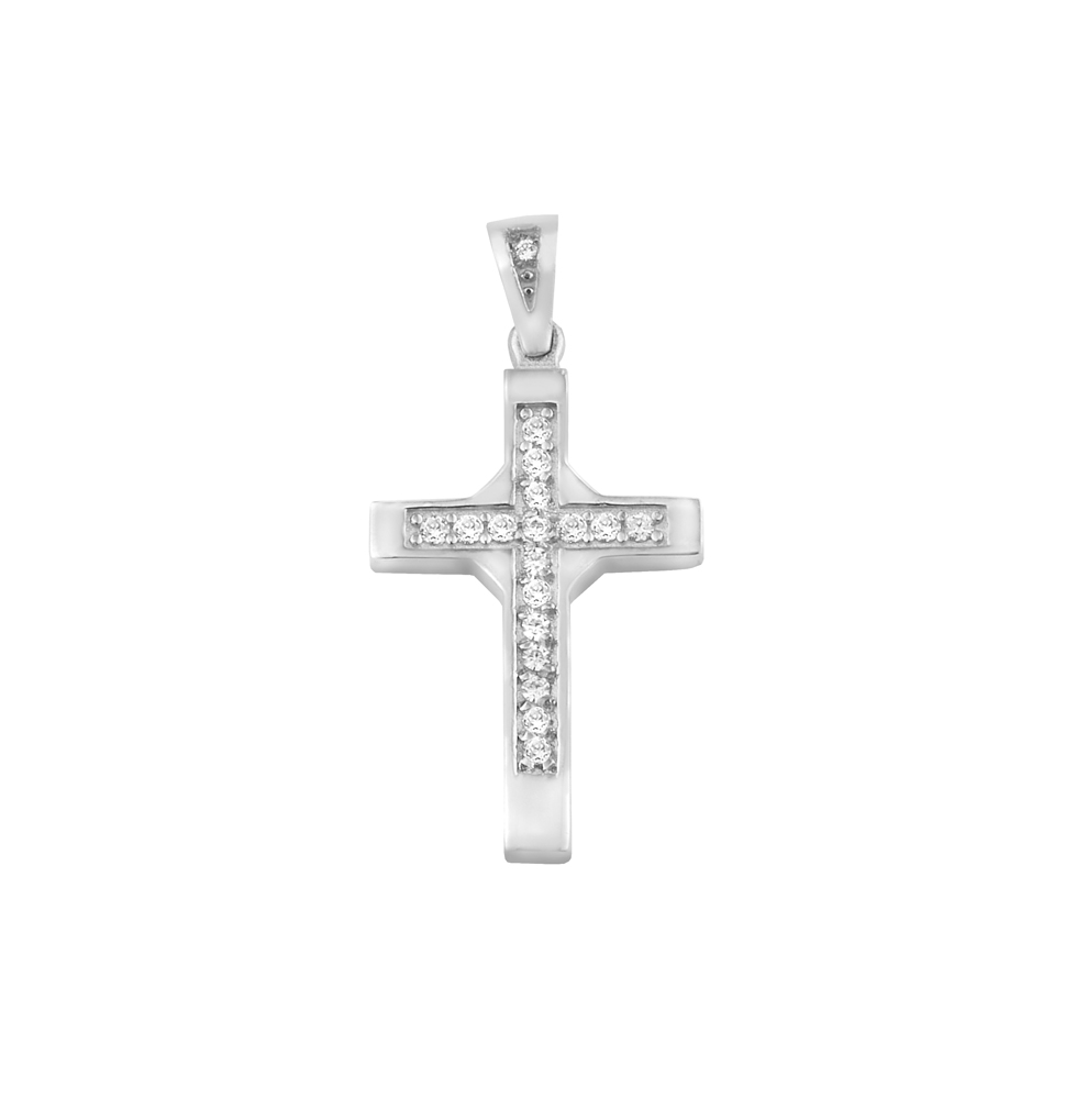Γυναικείος σταυρός σε λευκό χρυσό 9 καρατίων με λευκά ζιργκόν.