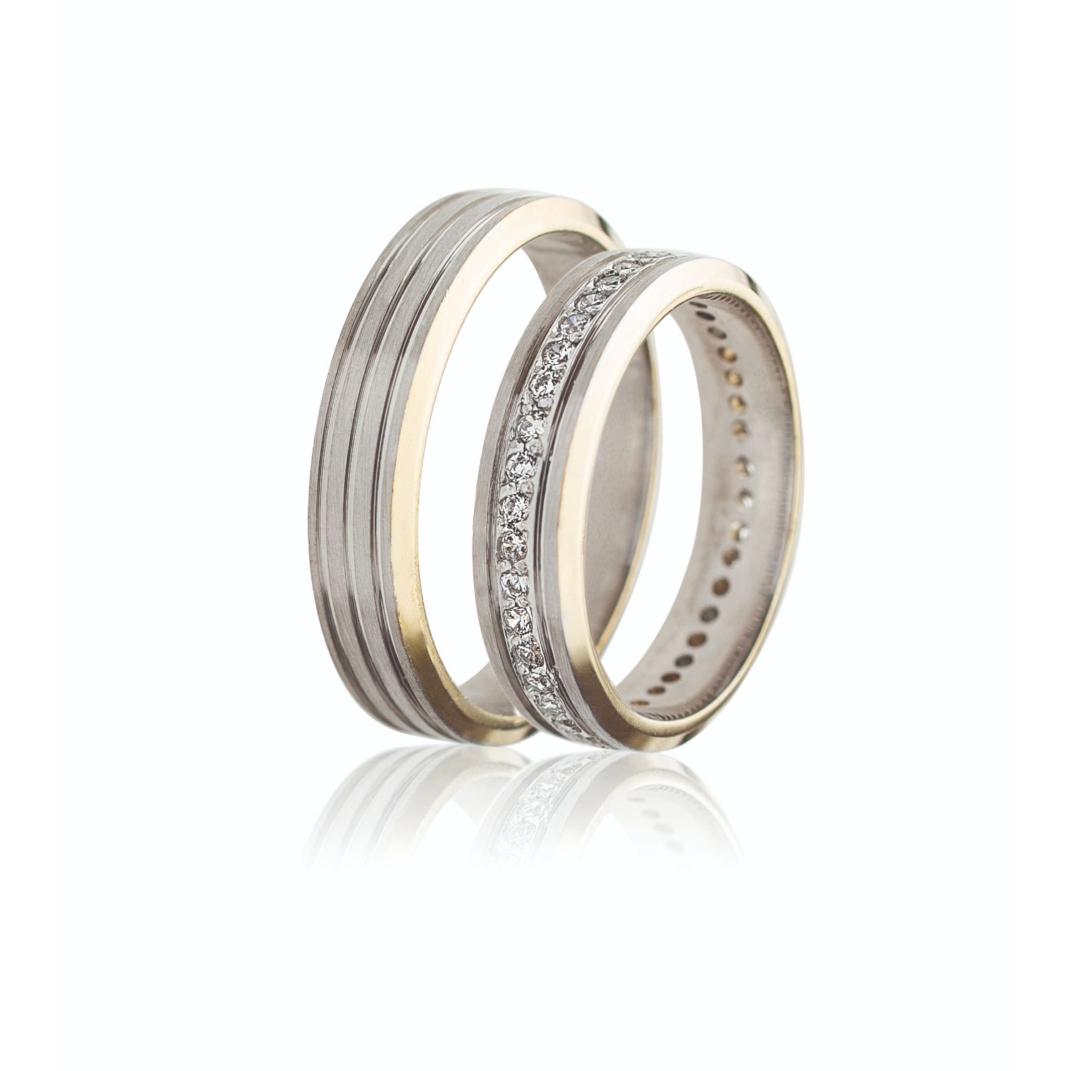 Ζευγάρι βέρες Maschio Femmina σειρά Celebrity 9Κ ή 14Κ ή 18Κ σε λευκό και κίτρινο χρυσό με πλάτος 4.5mm και 40 πέτρες ζιργκόν στη γυναικεία βέρα.