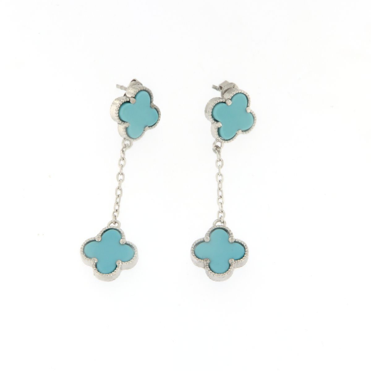 Γυναικεία μοντέρνα κρεμαστά σκουλαρίκια με σχήμα μαργαρίτας και τυρκουάζ, ασημένια 925.