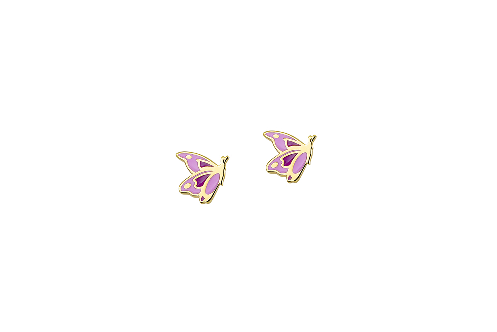 Children’s nailed earrings in 9 carat yellow gold with butterfly shape with enamel.