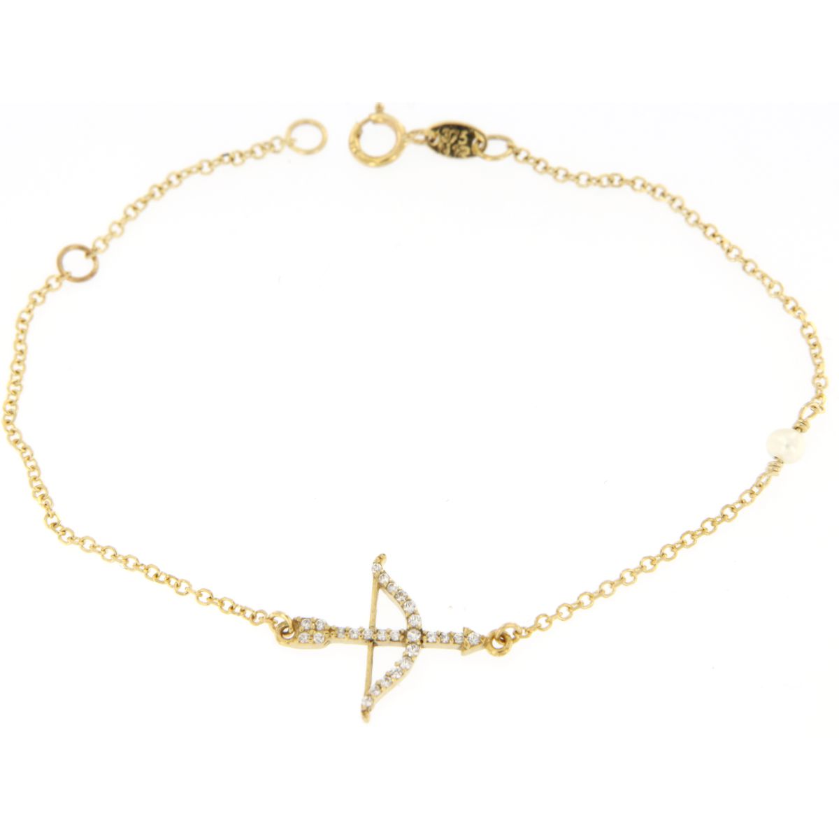 Children’s bracelet for a girl, in 9 carat yellow gold, decorated with a bow with white zircons and an eye.