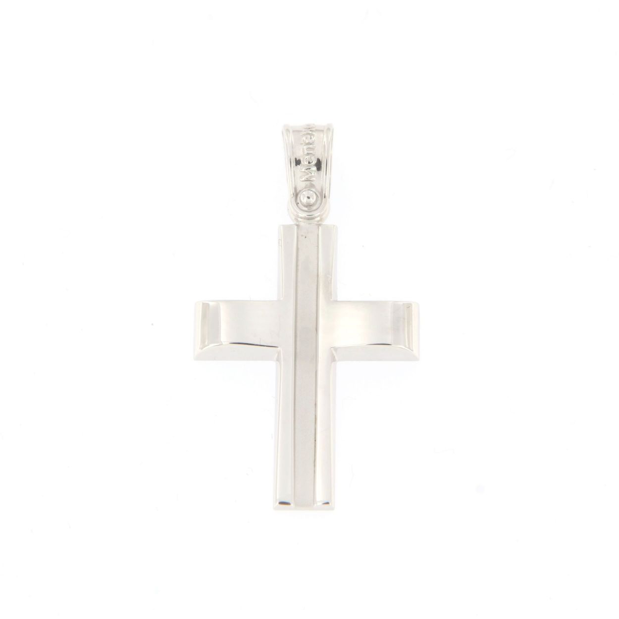 Male cross in 14 carat white gold.