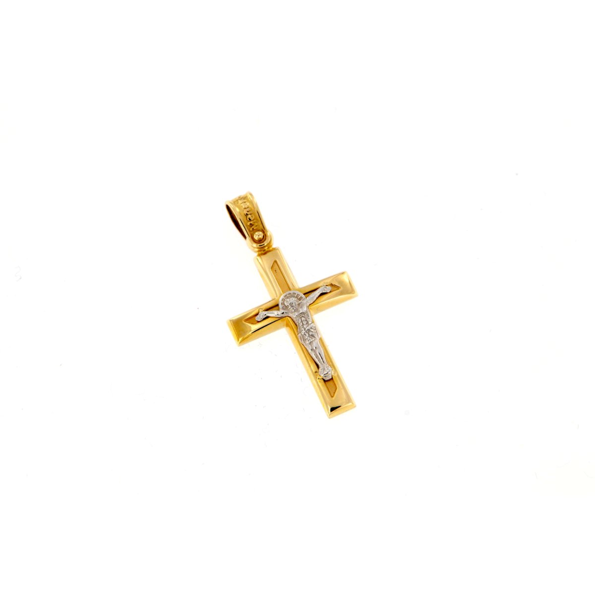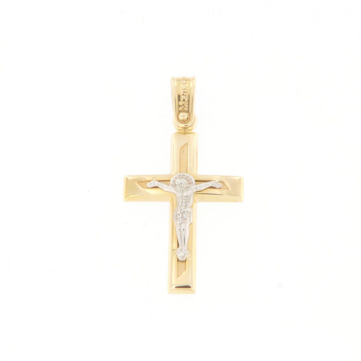 Men’s cross with 14 carats crucified in yellow and white gold.