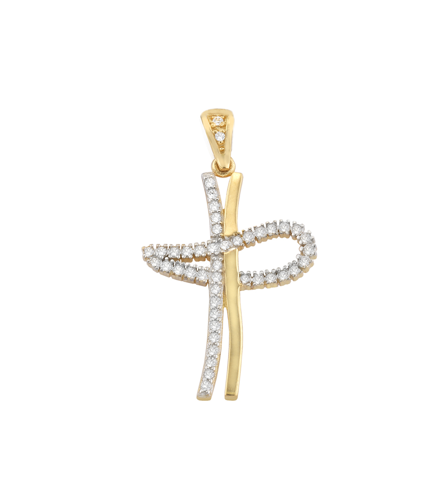 9K cross in yellow gold with zircon