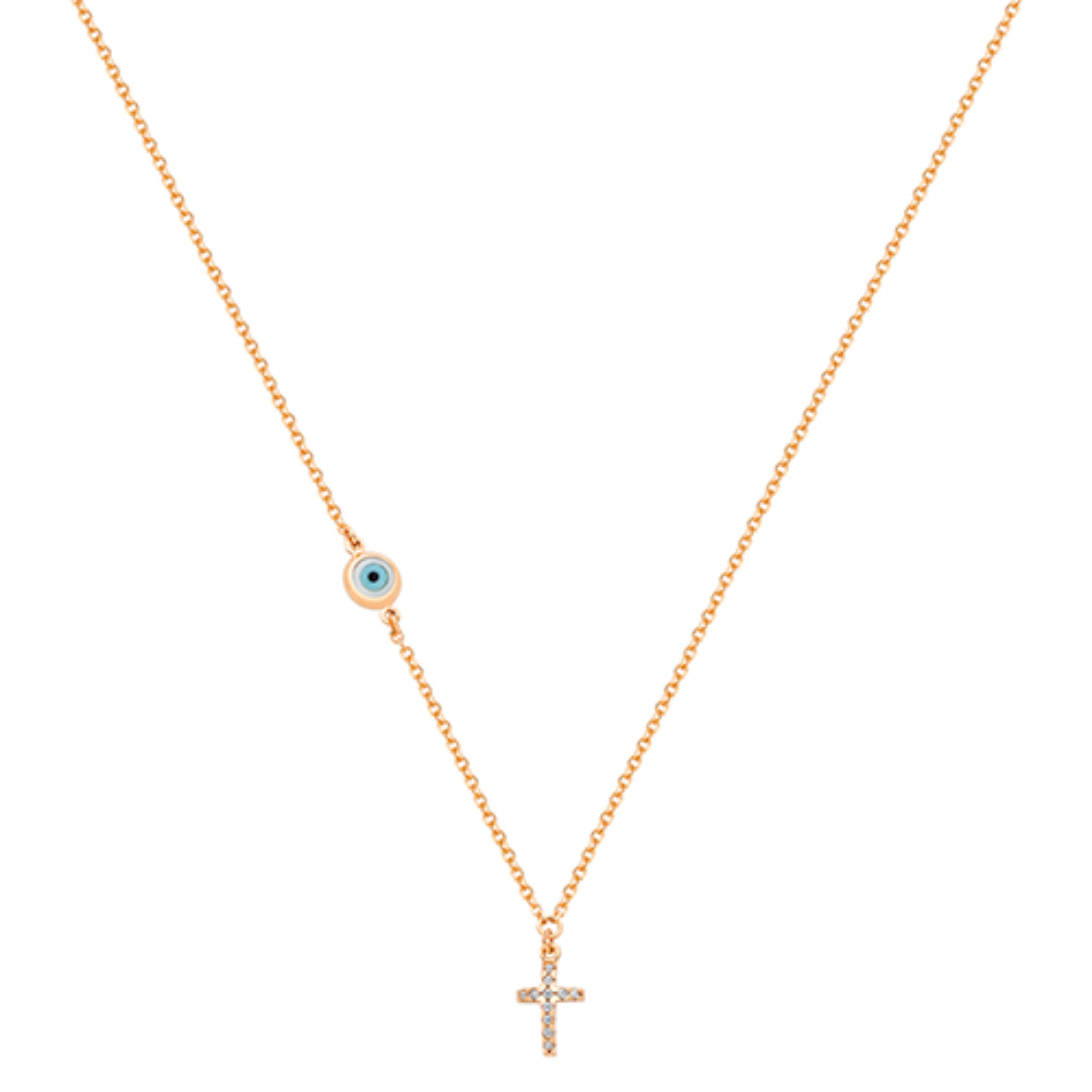 Cross necklace 9K in rose gold with eye on the chain