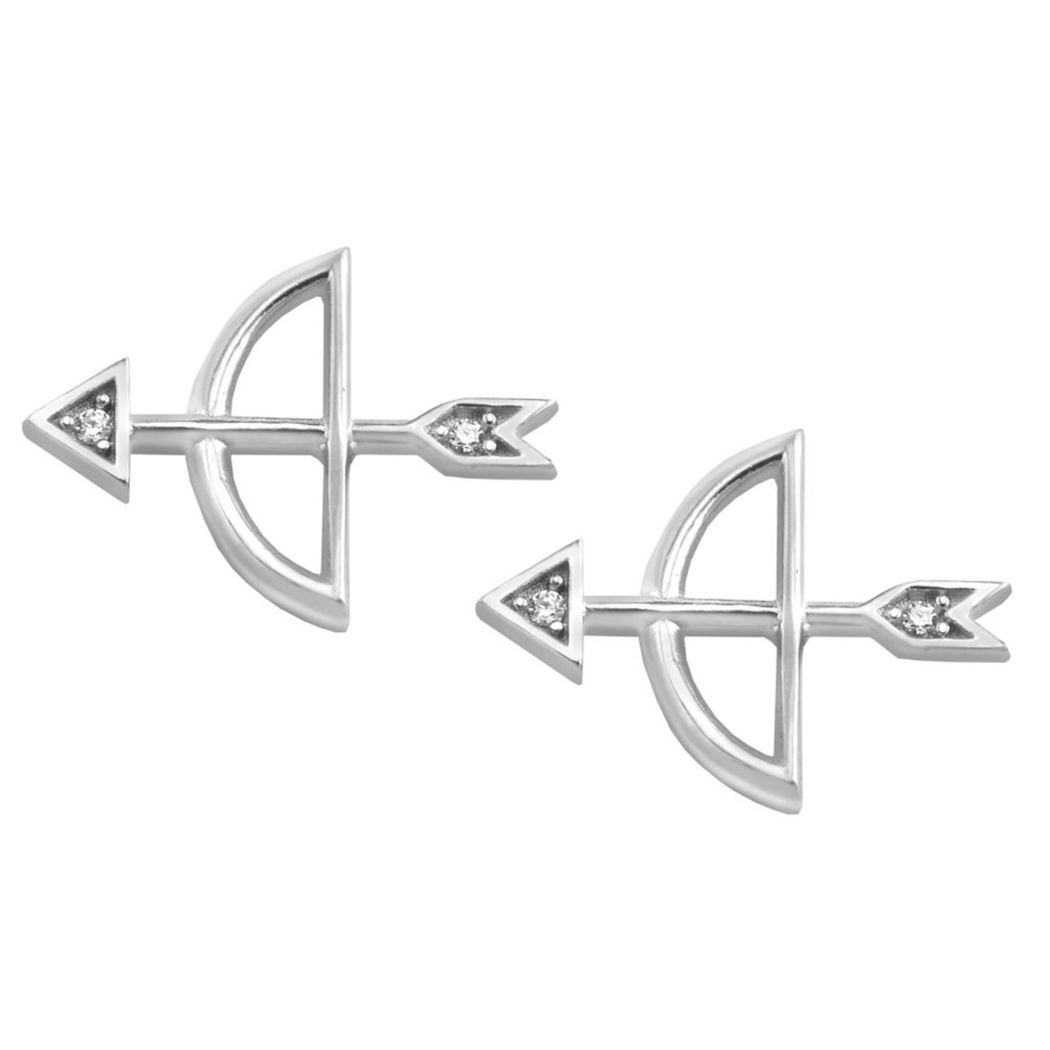 Women’s pinned earrings in 9-carat white gold with bow shape with white zircon.