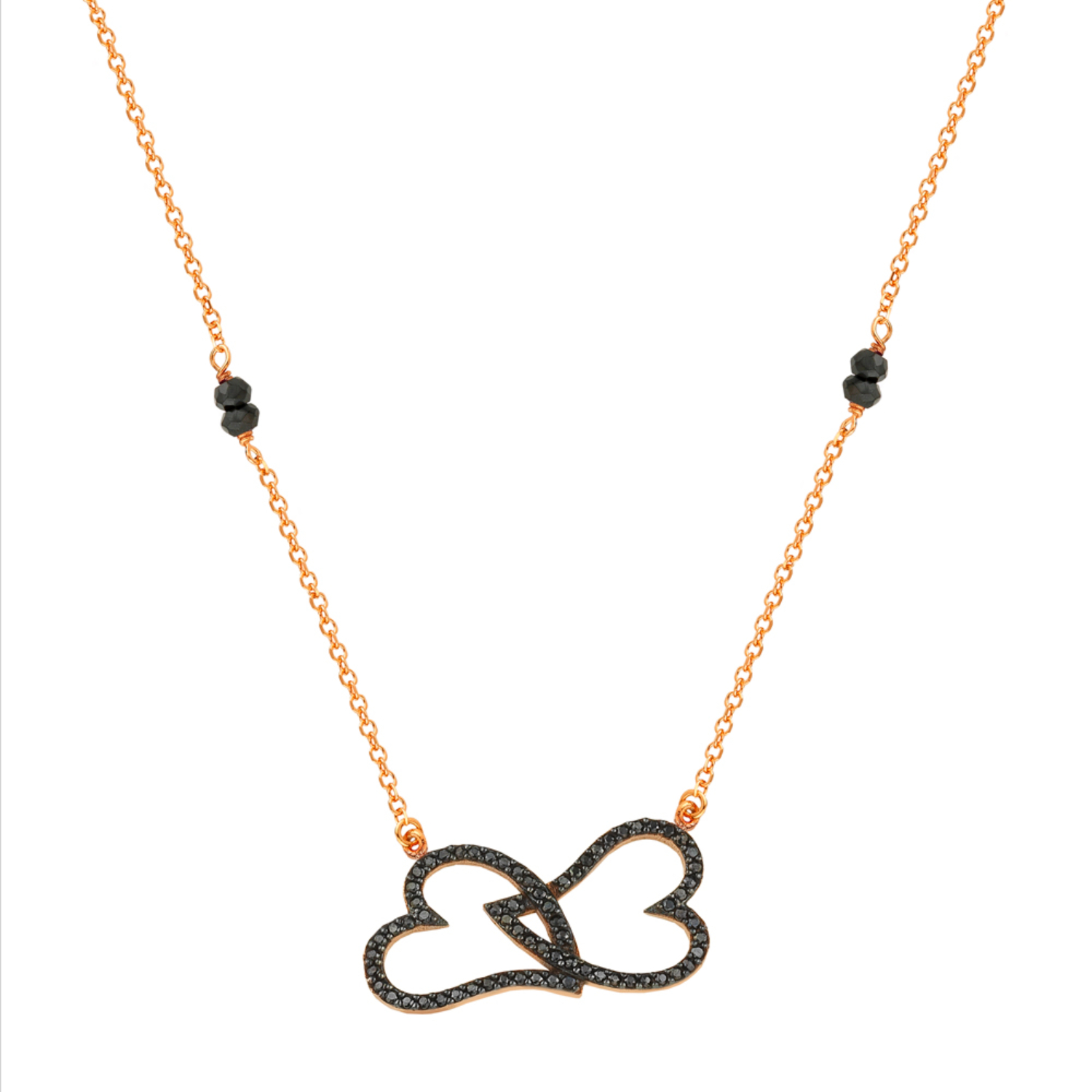 Women’s necklace in 14 carat pink gold decorated with hearts with black zircon.