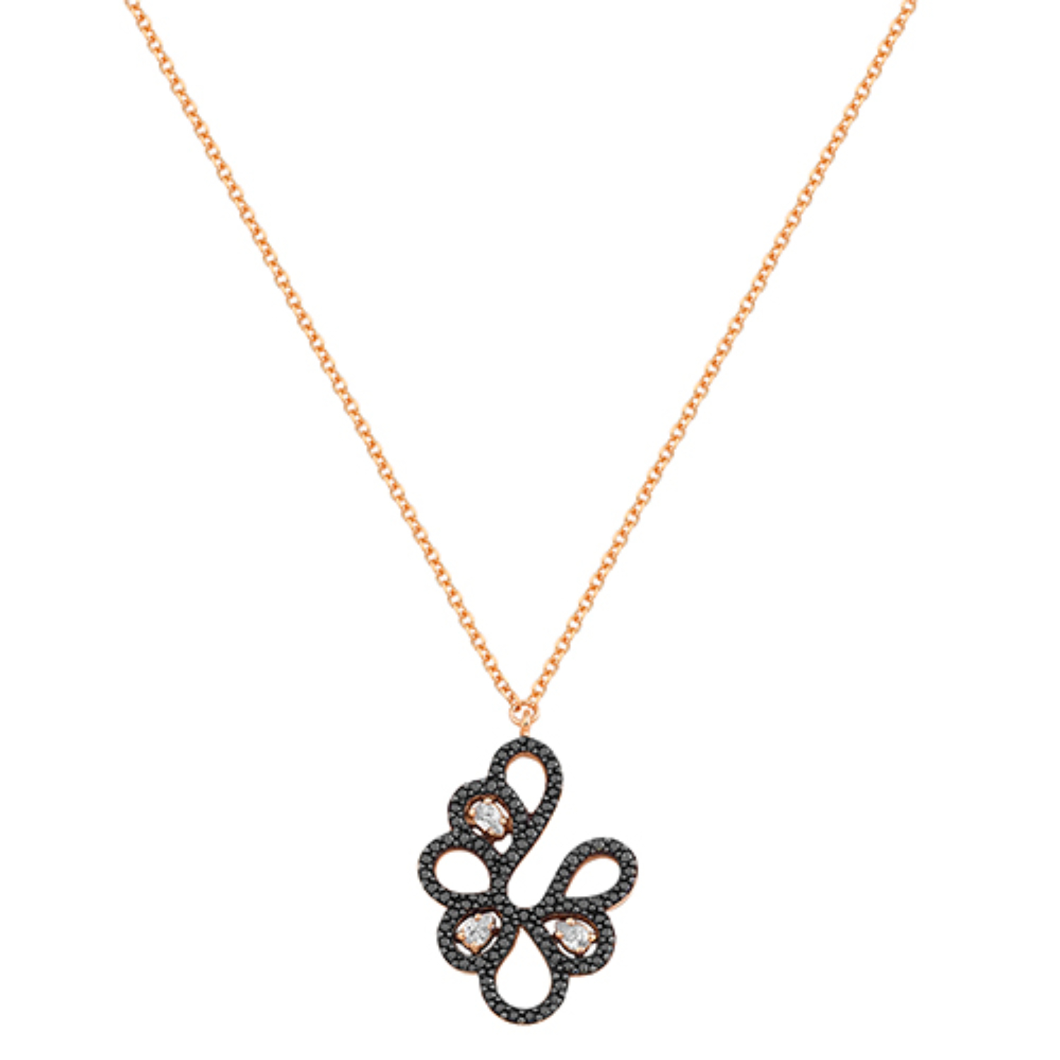 Women’s necklace in rose gold 14 carats with white and black zircons.