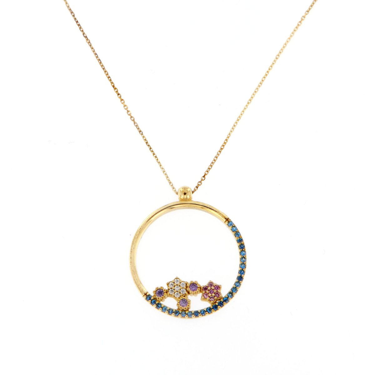 Women’s necklace in 14 carat yellow gold with zircon pendant.