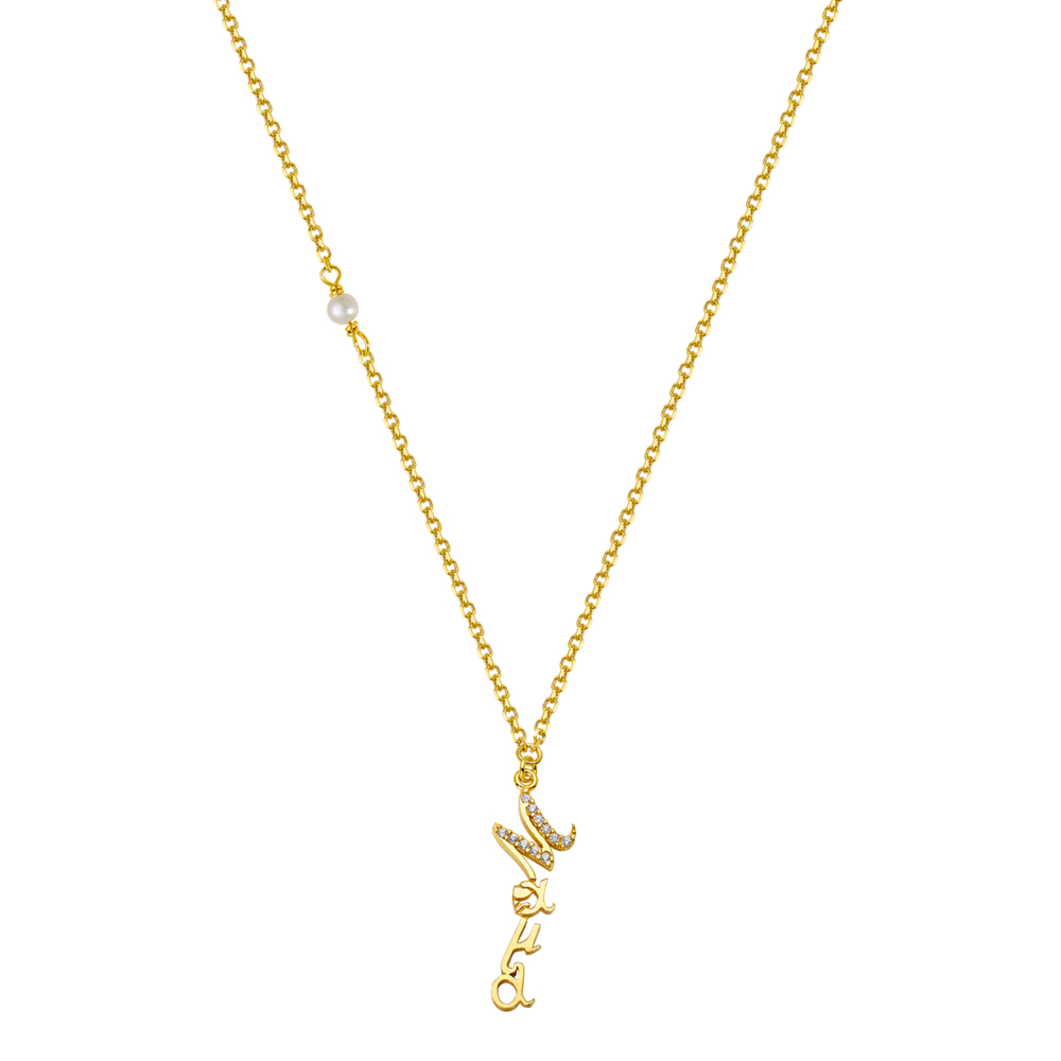 Women’s necklace in 9 carat yellow gold “mom” with white zircons.
