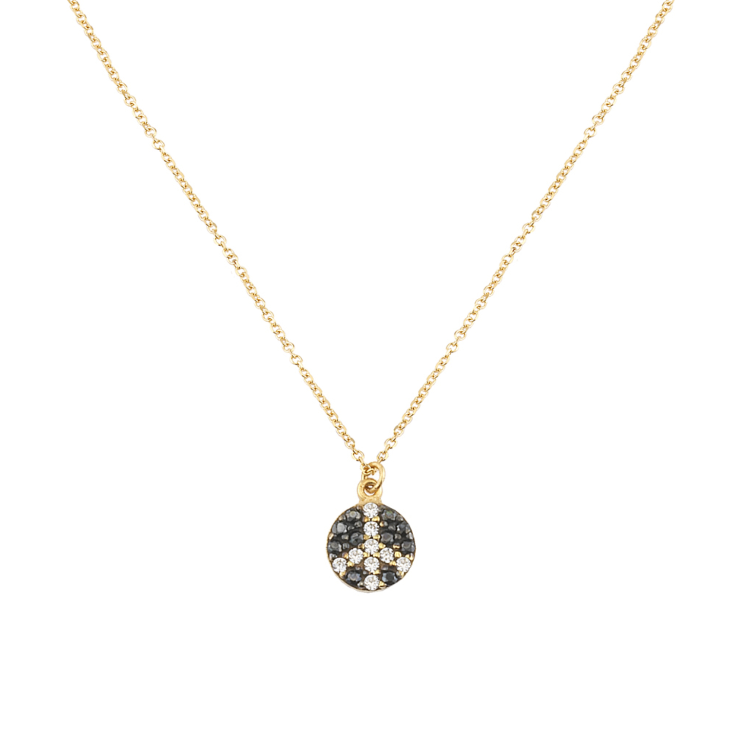 Women’s necklace in 9 carat yellow gold with black and white zircons.