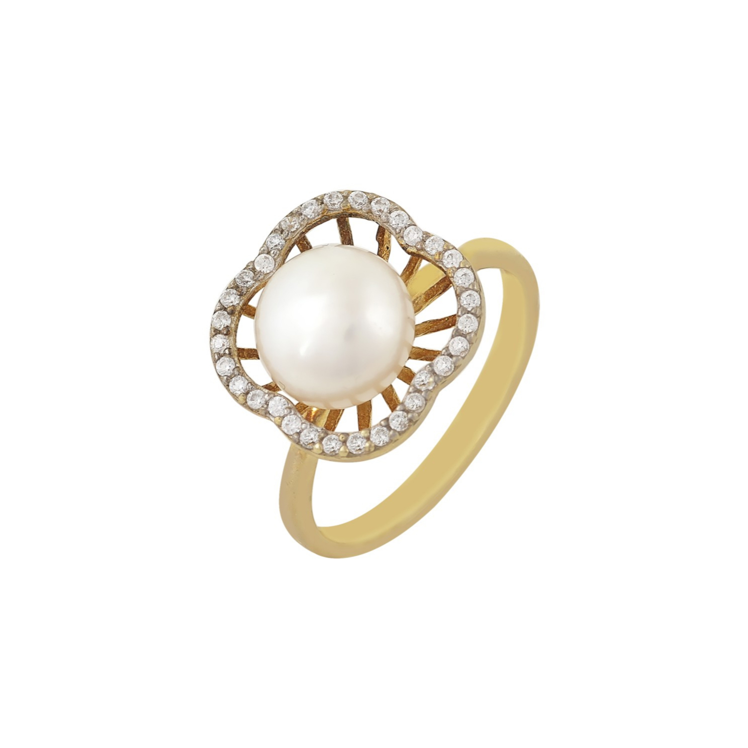 Women’s ring in 14 carat yellow gold with pearl and zircon.