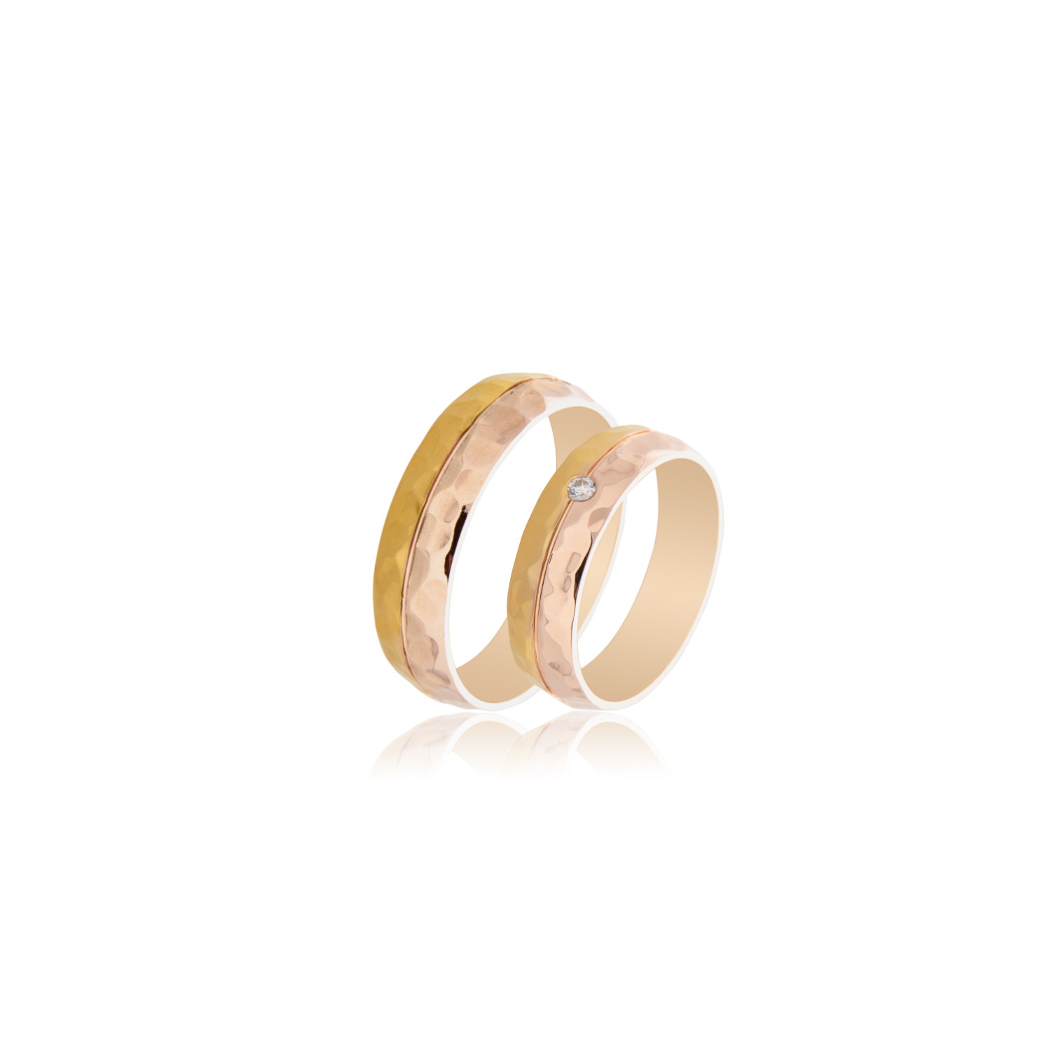 Pair of wedding rings Maschio Femmina series Famous in Iove 9K or 14K or 18K in yellow and pink gold with a width of 5.5mm and 1 zircon stone on the women’s wedding ring.