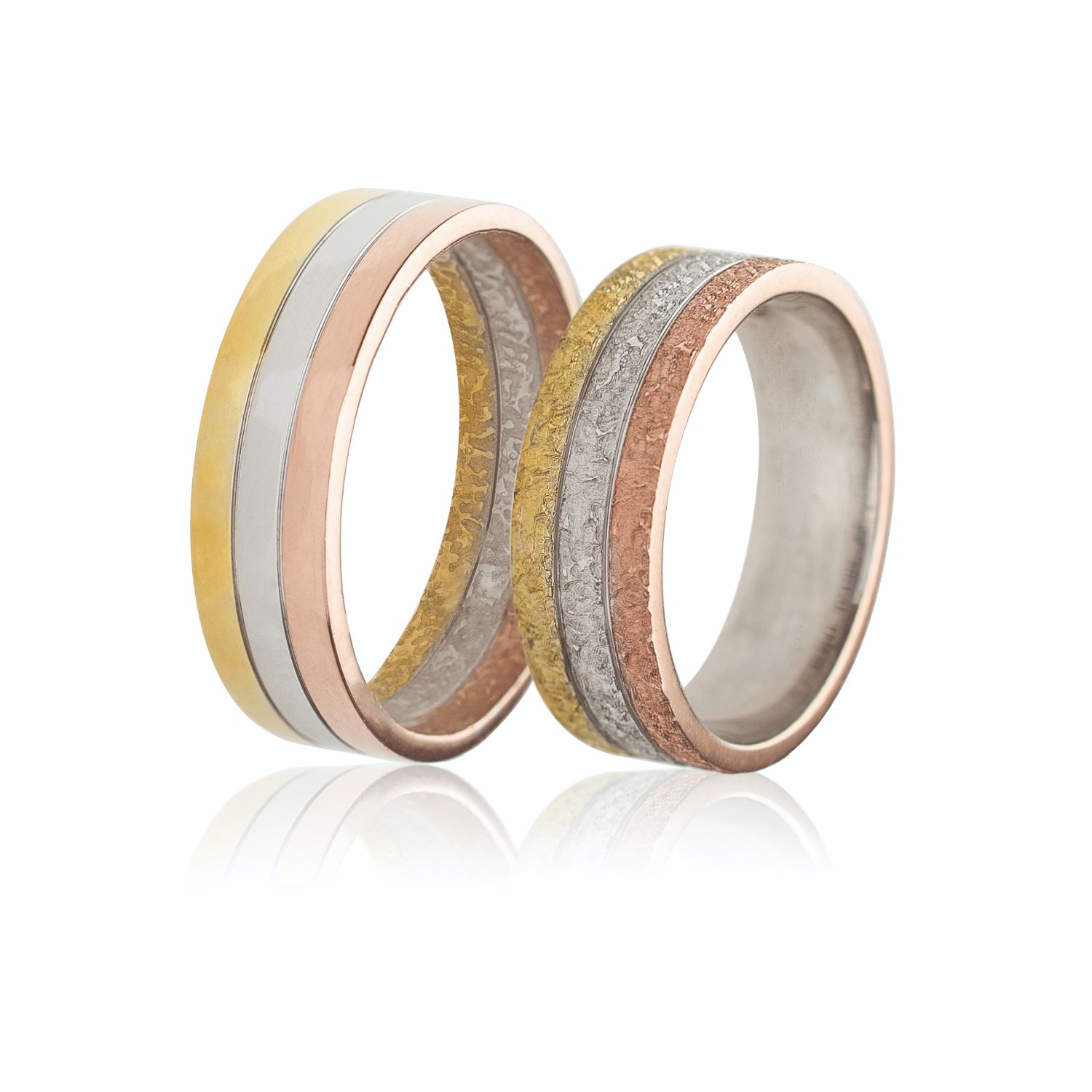Maschio Femmina wedding rings in pink, white and yellow gold with a width of 6mm