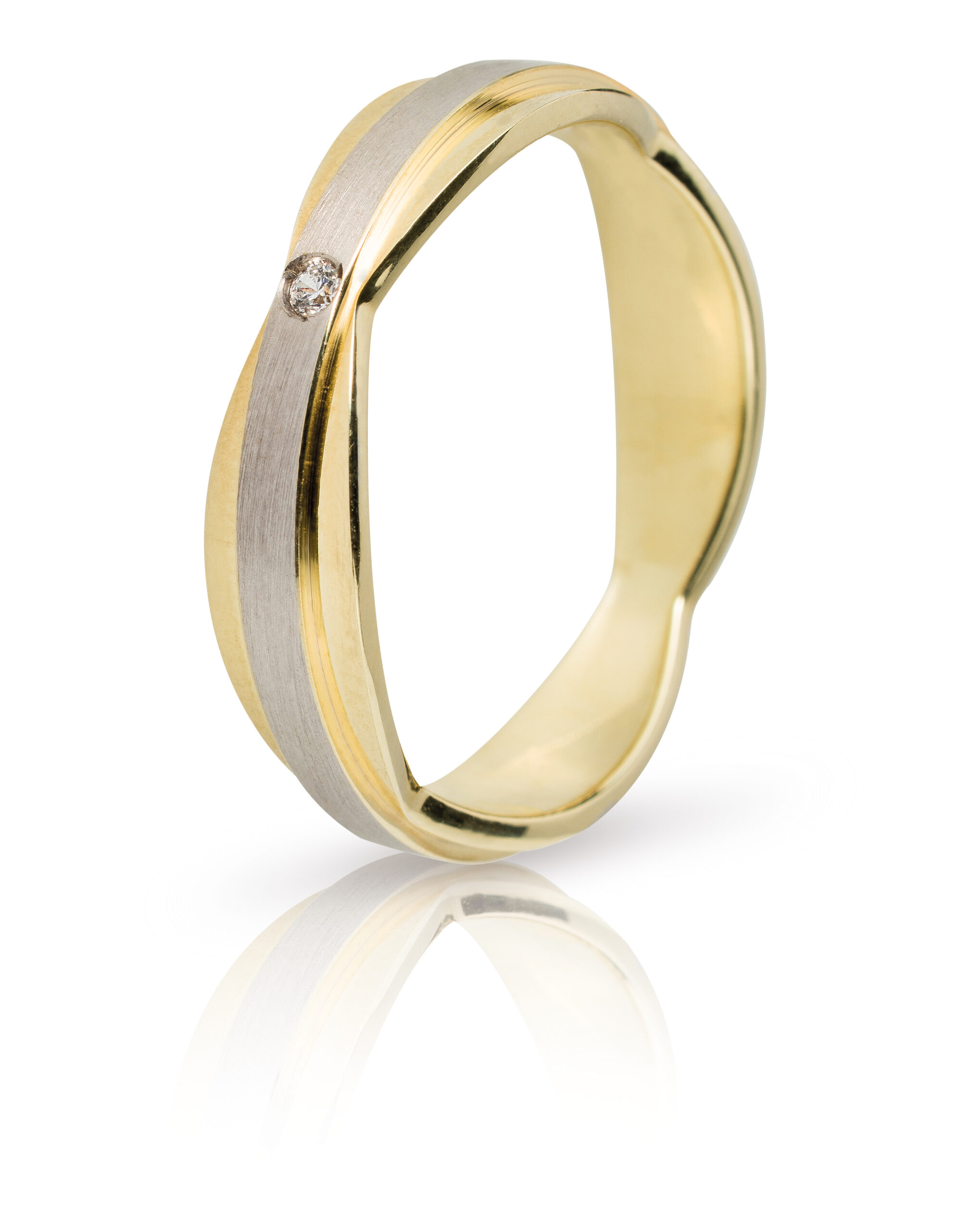 Maschio Femmina wedding rings in white and yellow gold with a width of 5.2mm