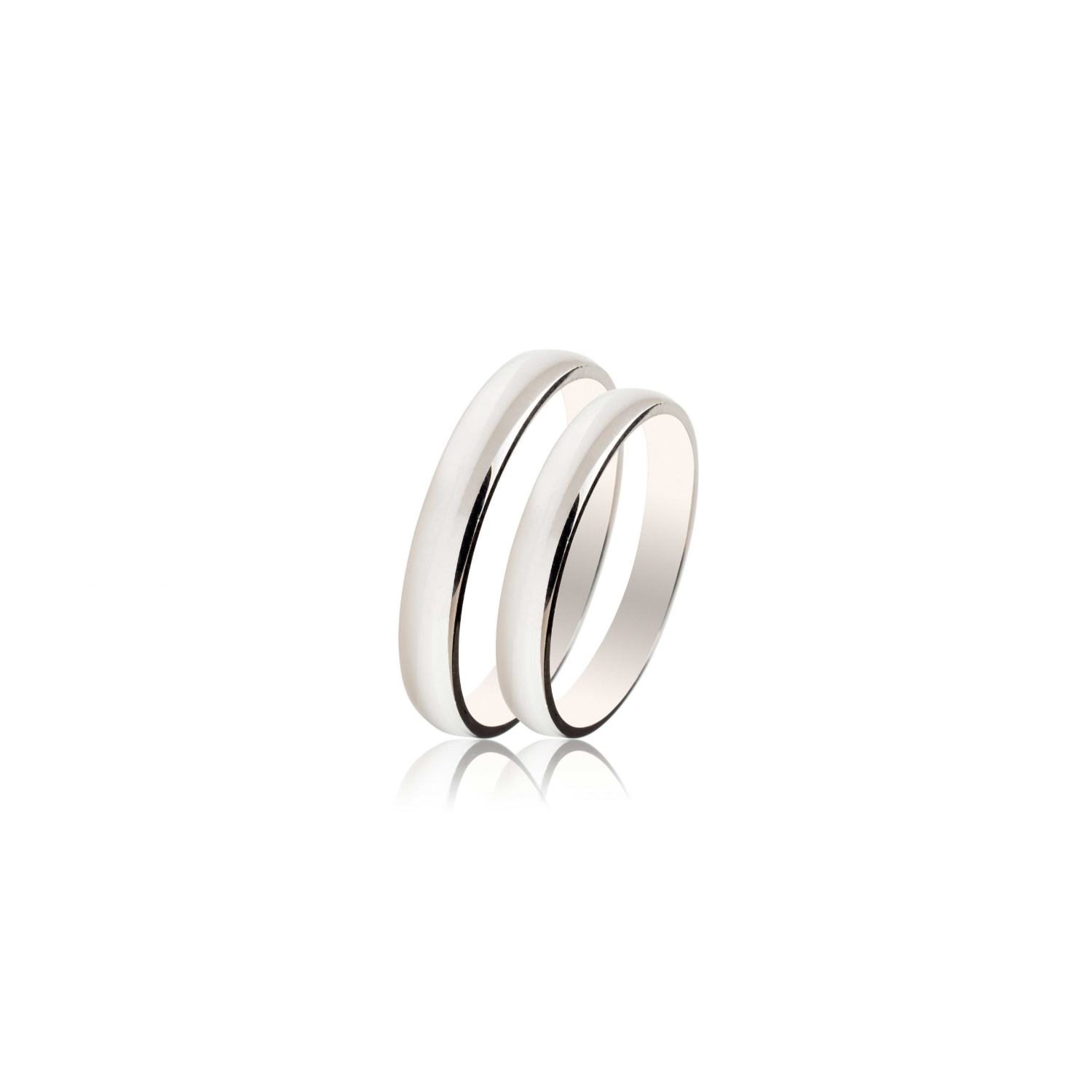 Pair of wedding rings Maschio Femmina series Slim 9K or 14K or 18K in white gold with a width of 3.25mm.